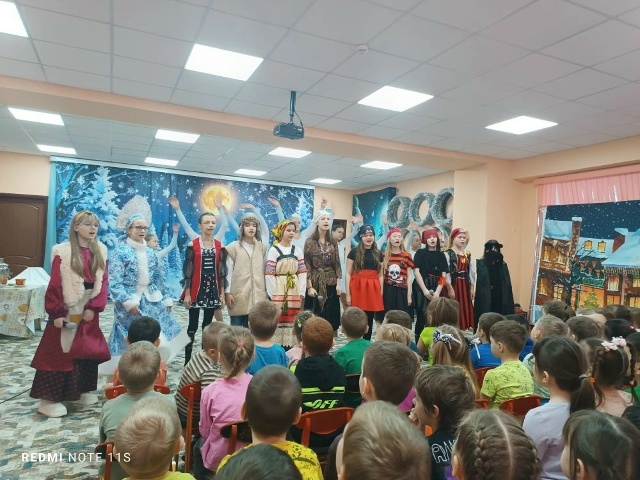 Учащиеся хорового отделения, класс преподавателя Максимовой Т.Н. и хореографического отделения, класс преподавателя Корниенко Д.А. в рамках доброго дела "От сердца к сердцу" подарили рождественскую сказку "Снегурочка" для воспитанников дошкольных учреждений ЦО № 26